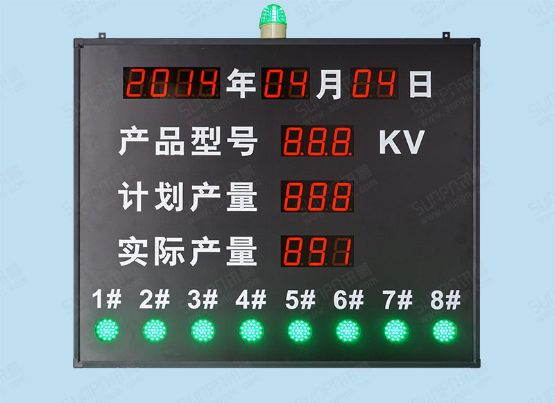 6.看板頂部報警燈控制:實際產量>=計劃產量亮綠燈,否則綠燈熄滅;