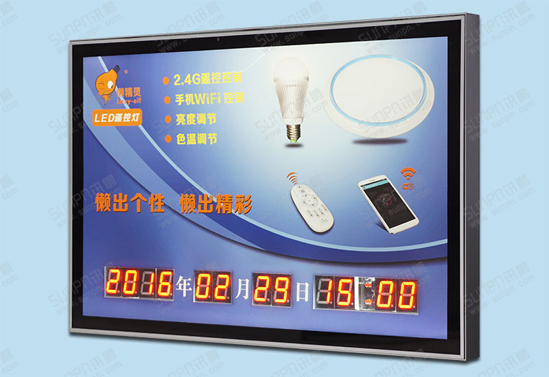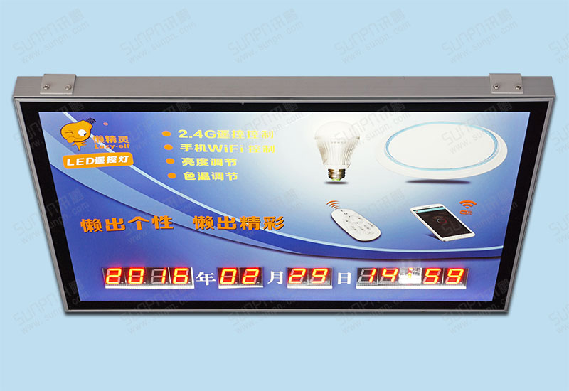 看板功能簡述:1.看板采用整體背光設計,更美觀大方;2.日期和時間為當前日期時間,自動運行,可遙控編輯校正;
