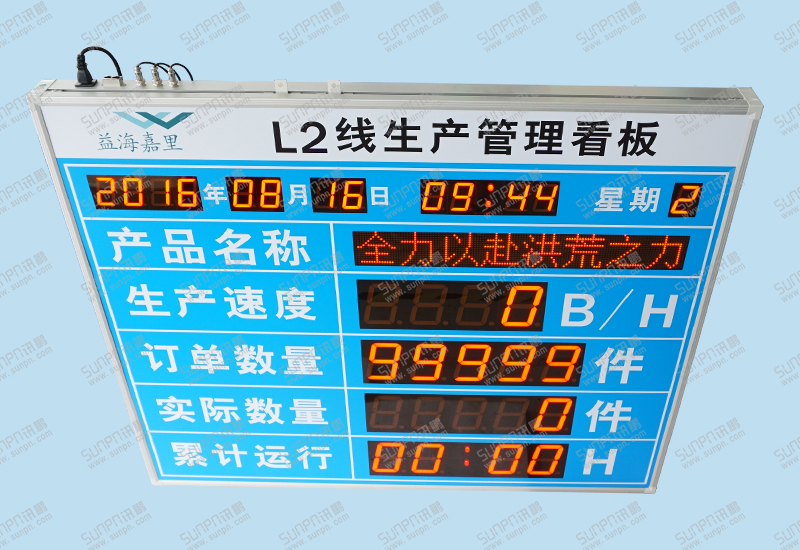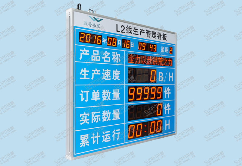 3、生產速度:對接客戶設備電壓信號*60,開機設備給出第一個開關電壓,看板開始計時,以秒為單位,1*60 第二個開關信號,2*60,以此類推,一分鐘后取最大數*60,實時顯示,一分鐘后重新開始計算。