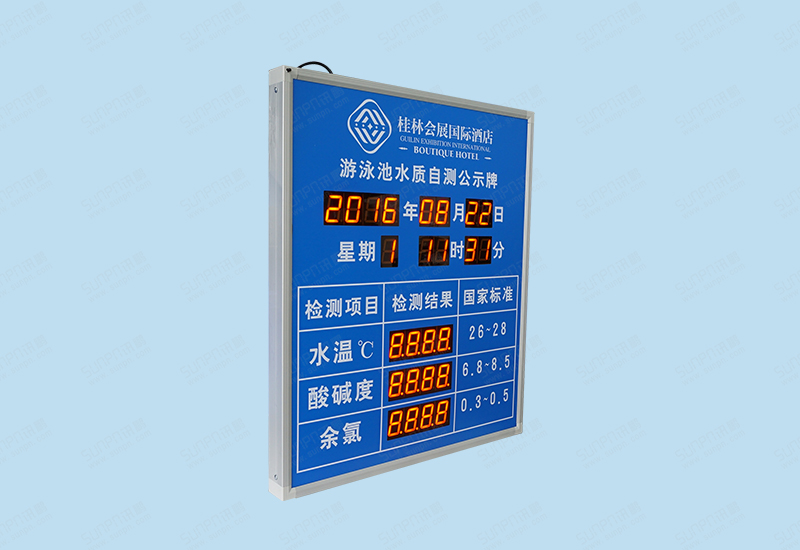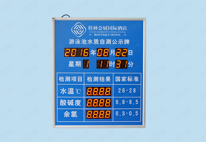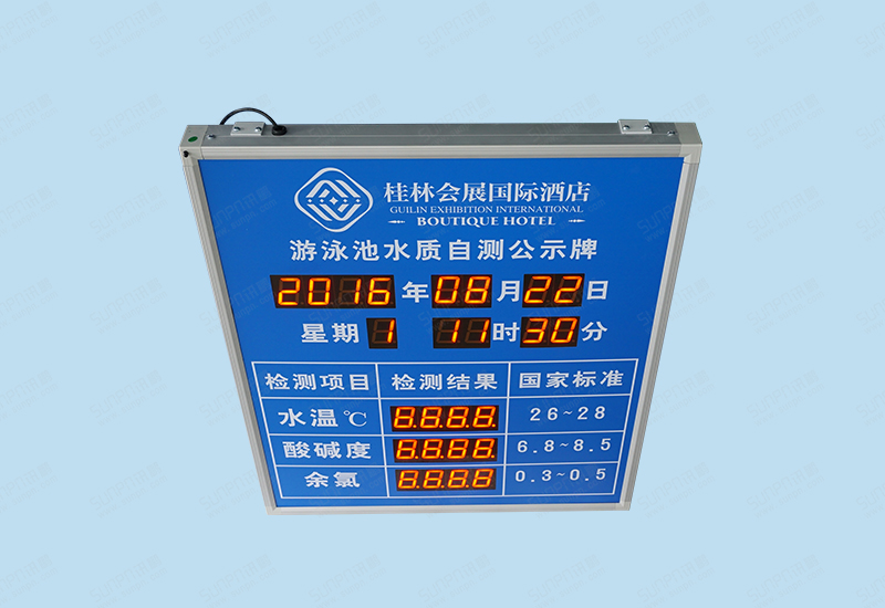 2.水溫、酸堿度、余氯通過傳感器自動采集顯示,可通過遙控器編輯矯正;