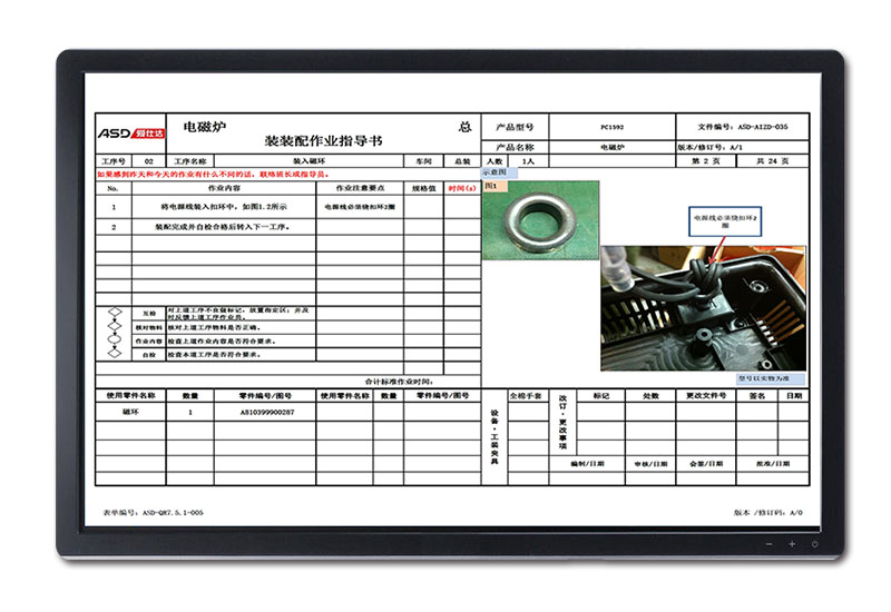 隨著網(wǎng)絡(luò)信息化的發(fā)展,液晶顯示終端的價(jià)格合理化,誕生了電子化SOP作業(yè)指導(dǎo)書系統(tǒng),這種新型電子化SOP的優(yōu)勢(shì),迅速覆蓋了全國大型企業(yè)使用。越來越多的企業(yè)關(guān)注,電子數(shù)字化管理使用頻率高,換線速度快, 顯示出生產(chǎn)現(xiàn)場(chǎng)的大方整潔提高企業(yè)型像, 生產(chǎn)線規(guī)范,可實(shí)現(xiàn)生產(chǎn)線的無紙化。