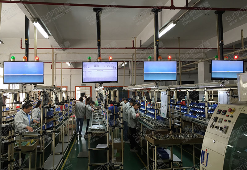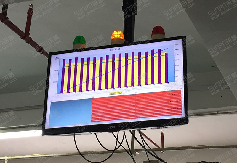 8、工數(shù)達(dá)成率用顏色區(qū)分,動態(tài)工數(shù)為藍(lán)色,實際工數(shù)為綠色通過軟件自動采集、自動運行,實際工數(shù)超出計劃工數(shù)時動態(tài)顯示綠色(同時亮綠燈),實際工數(shù)與計劃工數(shù)相同時動態(tài)顯示黃色(同時亮黃燈),實際工數(shù)低于計劃工數(shù)時動態(tài)顯示紅色(同時亮紅燈)。