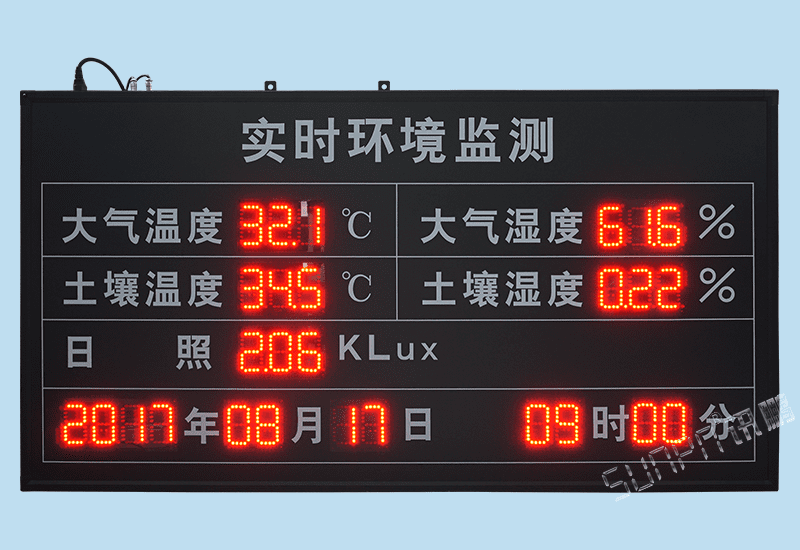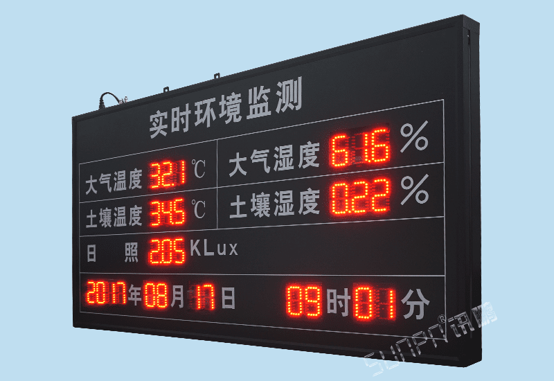 在農業上土壤濕度決定農作物的水分供應狀況。土壤濕度過低,形成土壤干旱,作用光合作用不能正常進行,降低作物的產量和品質;嚴重缺水導致作物凋萎和死亡。土壤濕度過高,惡化土壤通氣性,影響土壤微生物的活動。而實施環境數據監測LED電子顯示看板溫濕度電子看板可以監測土壤溫濕度,讓人們進行調節,豐富產出。