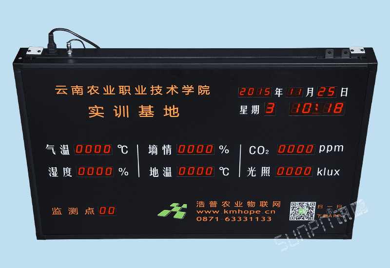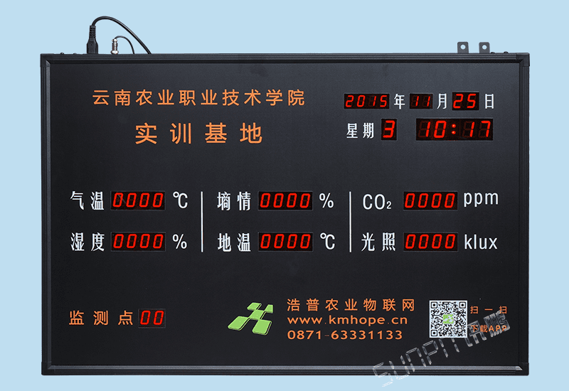 近年來,農業大棚種植為提高人們的生活水平帶來極大的便利,得到了迅速的推廣和應用。種植環境中的土壤溫度、水分等環境因素對作物的生產有很大的影響。運用大數據的理念、技術和方法手段,利用GPS定位、農田遙感監測、智能農機具等來集監測的多類型異質、海量數據綜合處理與分析,能夠實現設施農業生產督個環節的精準管理??筛鶕O測需求安裝對應傳感器,監測土壤溫度、土壤電導率、土壤PH值、地下水水位、地下水水質以及空氣溫度、空氣濕度、光照強度、風速風向、雨星等信息,收集全面、精準的數據。當數據采集完成后,傳輸設備會把數據發送到LED農業大棚數據采集通訊屏電子看板進行顯示,并發送至服務器儲存和分析,及時、準確地提供各監測點的土壤墑情狀況,為減災抗等生產管理提供了重要的基礎信息。