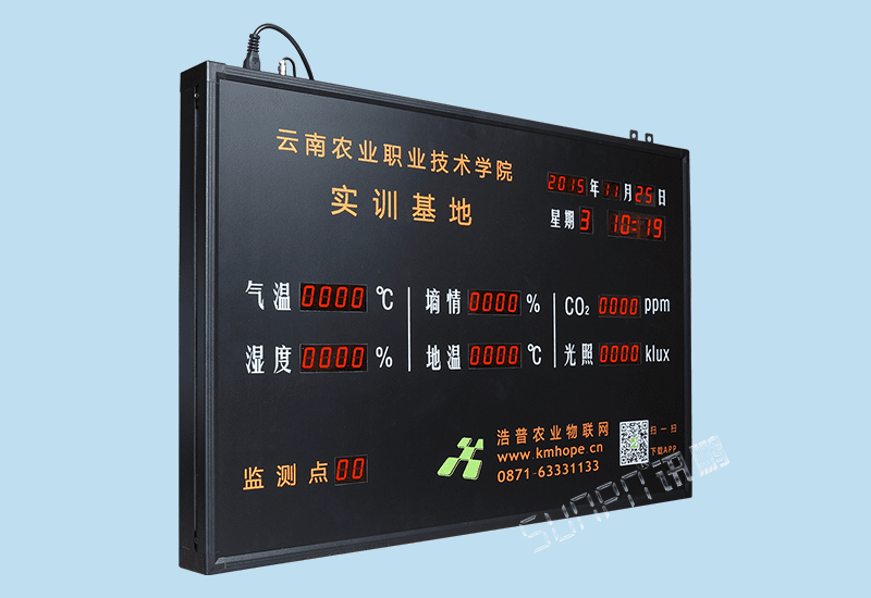 訊鵬農業大棚數據采集通訊屏LED電子看板可自定義采集點、采集參數(如:空氣溫濕度、土壤溫濕度、光照強度、CO2濃度、PH值等)、采集頻率等。實現農業基地的信息檢測和標準化生產監控。為農業專家咨詢系統和農業大數據分析提供持續可靠的基地農業環境參數。幫助使用者了解土地灌溉情況、農作物長勢、病蟲害情況、農業環境情況等,最終實現農產品生產全程監控和災害預警。