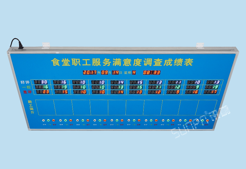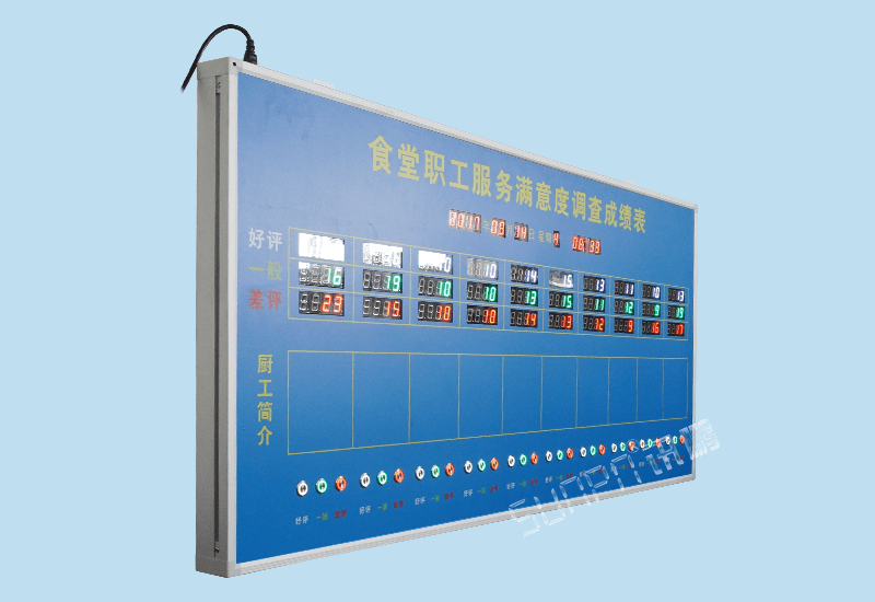 按鈕打分計(jì)數(shù)LED顯示屏不僅可以用在食堂職工服務(wù)滿意度調(diào)查上,還可以用在其他的滿意度調(diào)查,比如先進(jìn)員工的評(píng)比、單位對(duì)外窗口服務(wù)人員的評(píng)分、實(shí)施方案的投票等等。