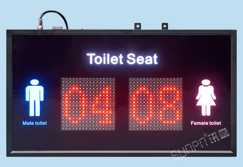 深圳市訊鵬科技有限公司自主研發(fā)的剩余廁位數(shù)量LED顯示屏使用有人無(wú)人人數(shù)統(tǒng)計(jì)監(jiān)測(cè)人流量計(jì)數(shù)器電子看板系統(tǒng),將廁位的使用情況實(shí)時(shí)顯示出來(lái)一目了然不用苦苦等待。