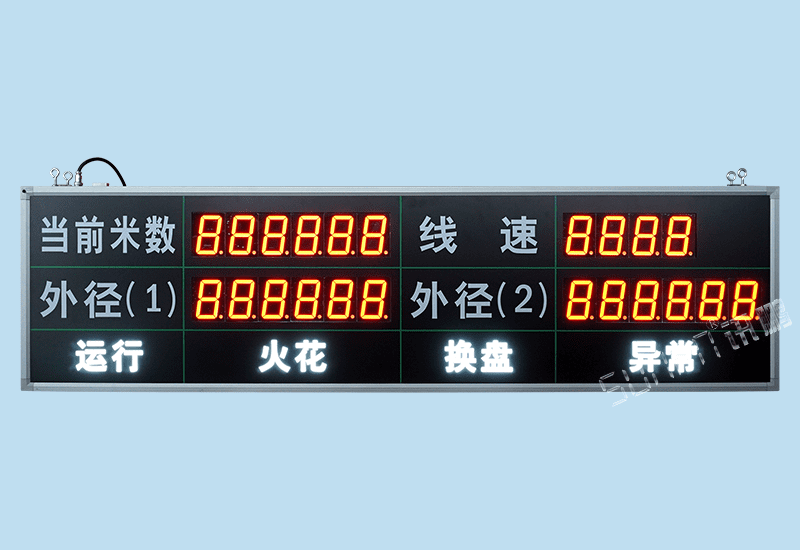 訊鵬自主研發電線線纜線徑生產車間管理看板設備狀態數據實時監控電子看板線經儀計米器線速RS485通訊顯示屏,放大設備數據顯示,讓數據更直觀,全面配套采集設備,更便捷、精準的數據采集模式。