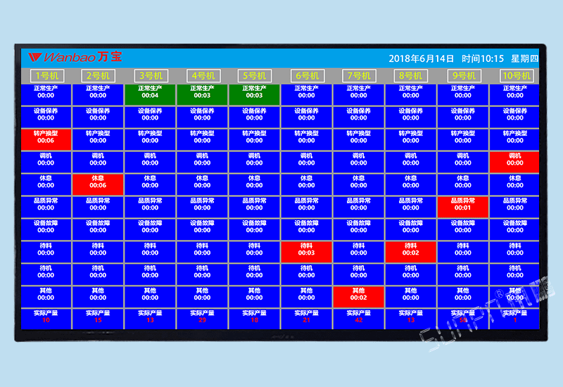 7、維修呼叫管理——通過維修安燈andon看板,顯示維修信息。