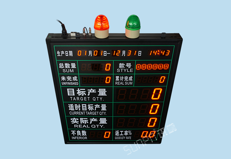 單機版LED生產管理看板是最簡單的一種生產管理工具,他只由工位觸發硬件(計數按鈕盒、光電開關、PLC等)、顯示看板(點陣看板、數碼管看板)組成。只作為單條產線數據采集的目視化管理。