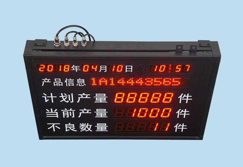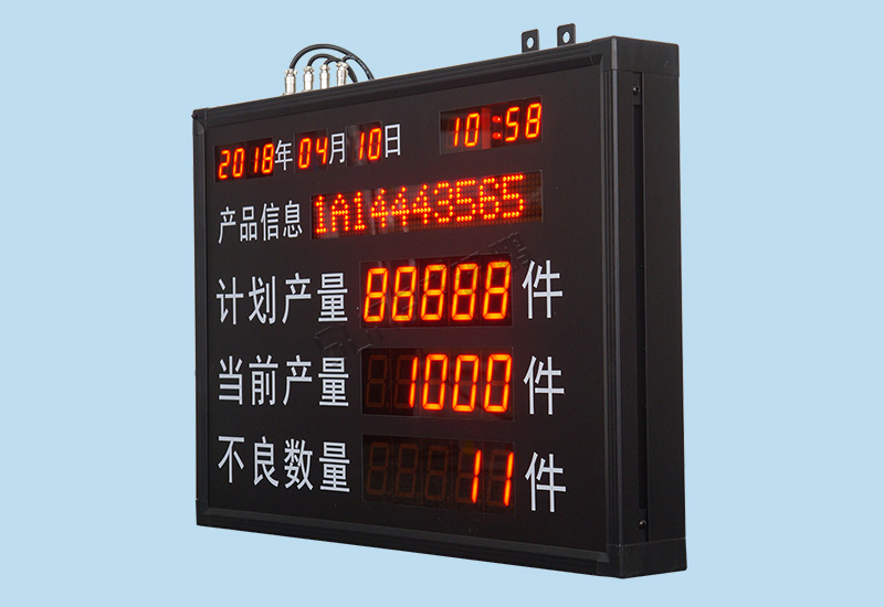 單機版LED生產管理看板是最簡單的一種生產管理工具,他只由工位觸發硬件(計數按鈕盒、光電開關、PLC等)、顯示看板(點陣看板、數碼管看板)組成。只作為單條產線數據采集的目視化管理。