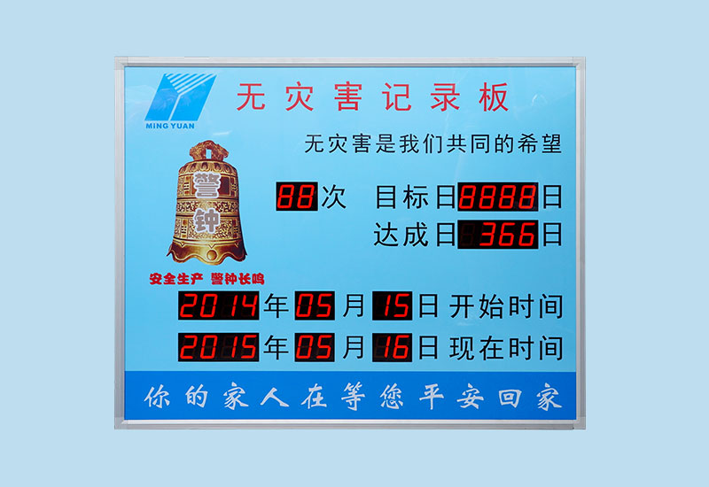 無災(zāi)害記錄板LED安全牌讓我們的工作不在能找任何借口,讓我們必須有效遏制違章操作,不合理操作。它可以讓我們的安全宣導(dǎo)不在流于形式,而是實(shí)實(shí)在在的落地。