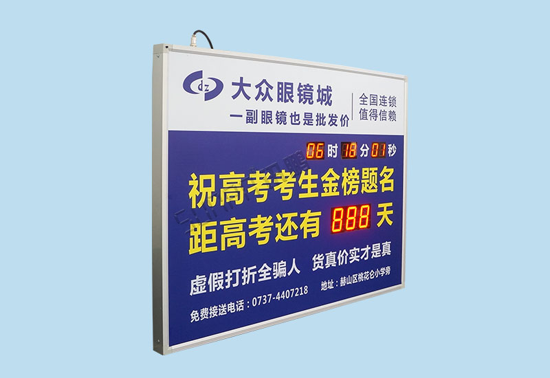 高考倒計時顯示屏主要用于高考倒計時或者中考倒計時等大型考試倒計時專場,高考倒計時顯示屏在學校的設立,也就是學校為了激勵學生珍惜現在的時間,時刻保持良好的學習狀態,高考倒計時顯示屏會懸掛在每間教室的墻上,顯示比較清晰,相比于傳統的需要手寫來統計的,這個更加醒目,所能達到的效果也會更好。