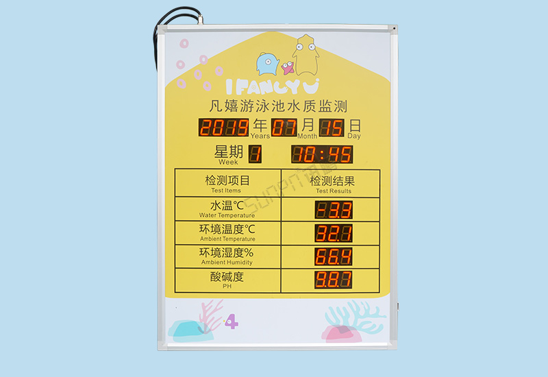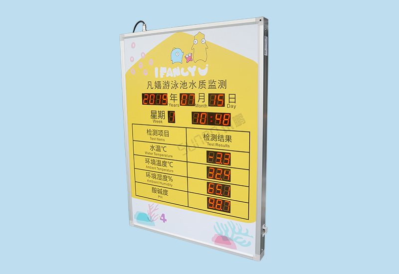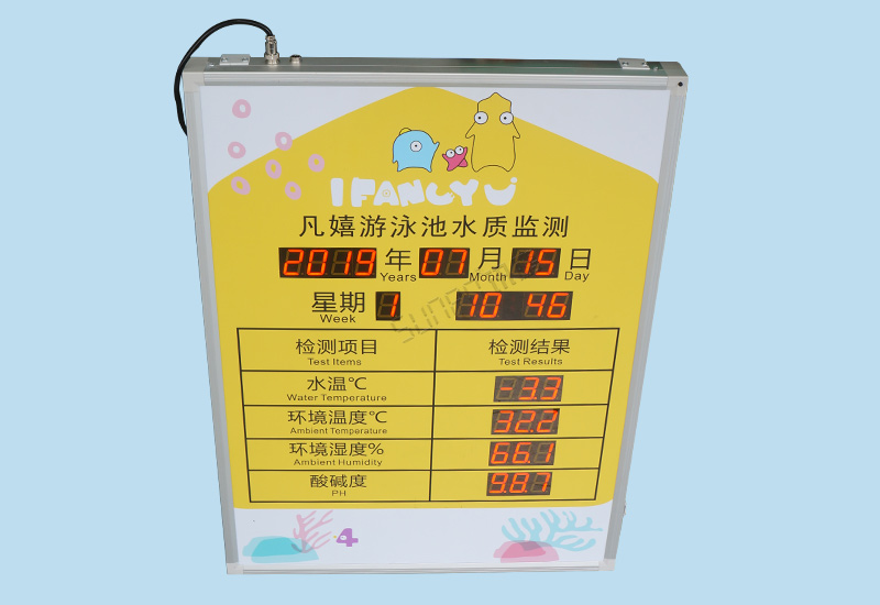 隨著現代城市的發展,娛樂項目日益增多,游泳池成為人們日常生活必不可少的娛樂選擇。游泳場所水質是否達標一直是廣大游客關心的問題,傳統的人工定時檢測并不能實時監測用用場所的水質變化,泳池水質監測電子看板共組存在一定的時空局限性。因此,近年來,水質在線監測設備在游泳場所開始普及。現在的游泳場館內的在線監測裝置,水質余氯、濁度、溫度、尿素等情況可以及時顯示在區衛生監督所及管理者電腦上,游泳場館安裝游泳池水質遠程在線監測系統,對水質進行2小時不間斷的監測。