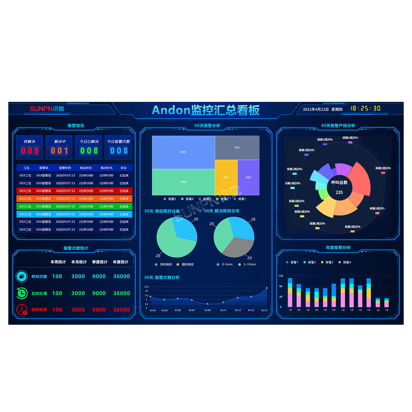 記錄每次異常報警的種類、響應時間和處理用時,為生產管理的分析和后期的持續改善提供數據依據。