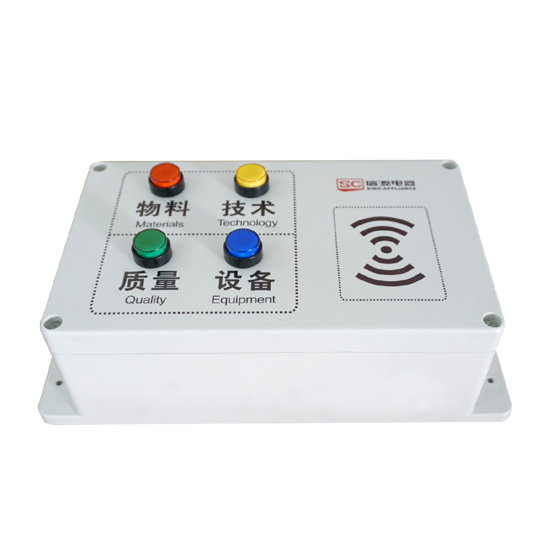 生產現場看板和對應工位指示燈報警,看板輸出外接揚聲器語音播報。