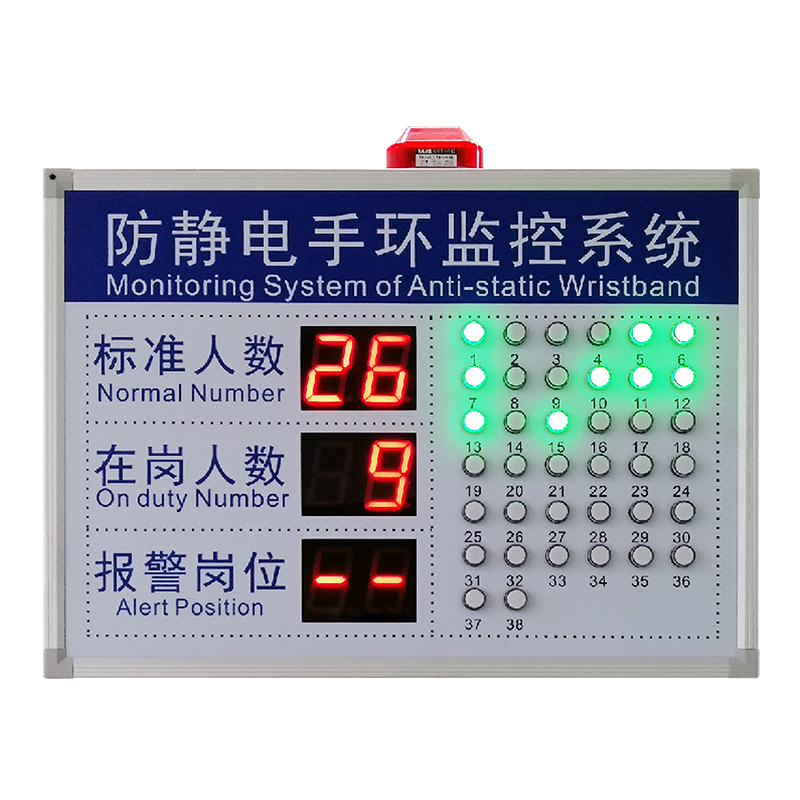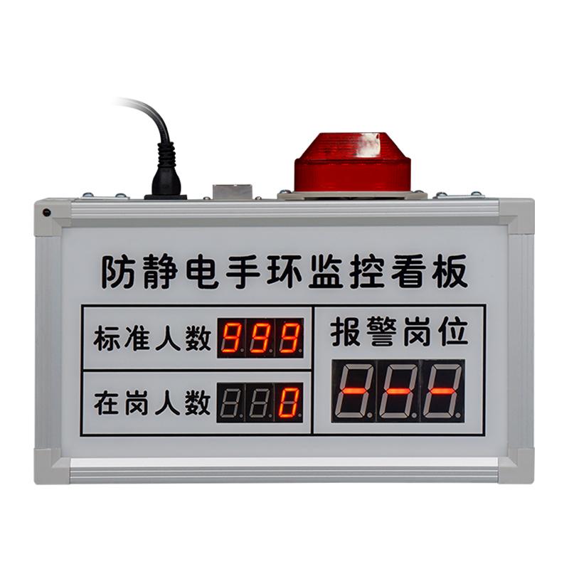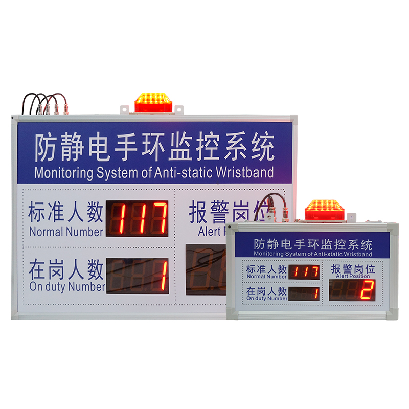 通過防靜電手腕帶監控儀對手腕帶、防靜電臺墊等設備的監控,由RS485有線或RF433無線把數據傳輸給管理軟件存儲、并實時發送給現場顯示屏,讓現場管理人員時刻精準了解現場的靜電防護情況。