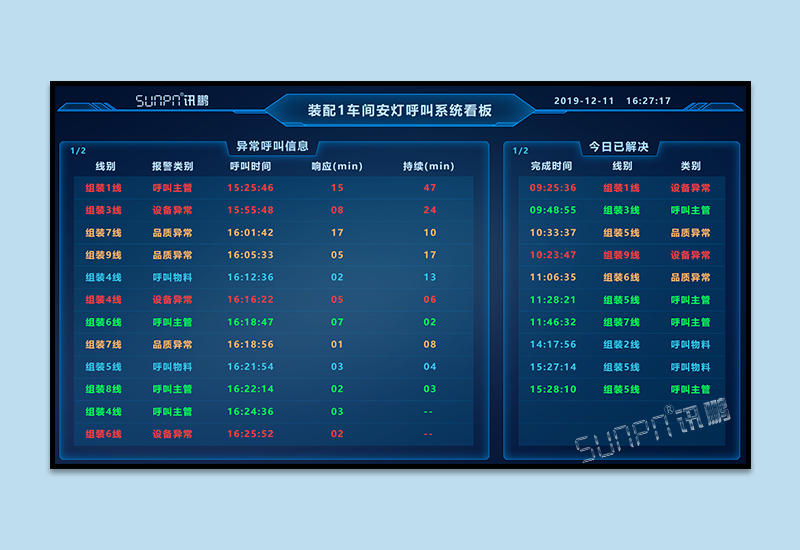5、促進持續改善:記錄每次異常報警的種類、響應時間和處理用時,為生產管理的分析和后期的持續改善提供數據依據。