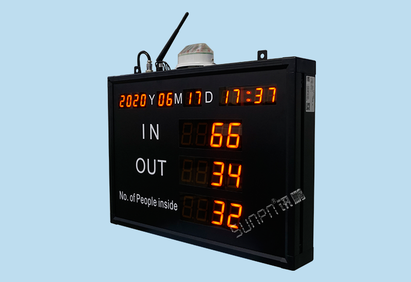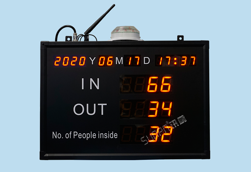 5、內(nèi)部可設置人數(shù)上限值,在場人數(shù)超過設定值警燈蜂鳴器報警 ,蜂鳴器可通過遙控器開關。