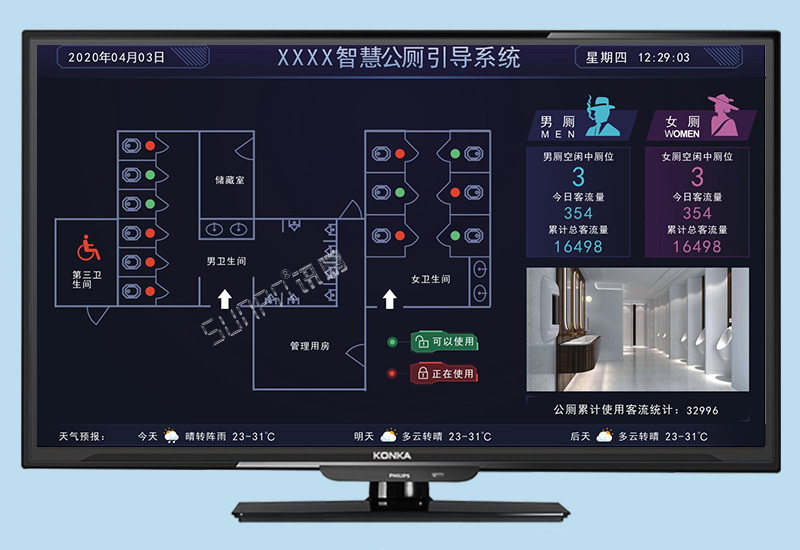 2、為游客提供地理位置引導服務、廁位引導服務,包括廁所的環境信息顯示等