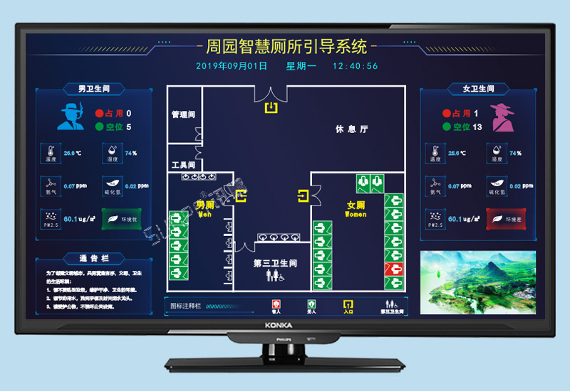 訊鵬液晶顯示智慧廁所引導(dǎo)系統(tǒng)